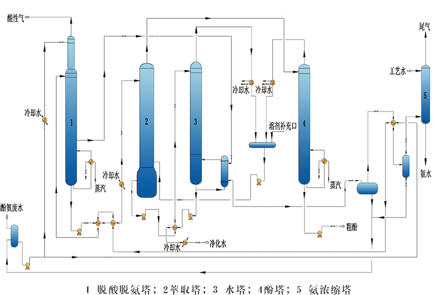 本技术实现了脱酸塔和脱氨塔的耦合,利用侧线采出、压差精馏技术,优化了能量的综合利用,进一步达到节能降耗的目的,简化了工艺流程,减少设备的投资,降低了材质难度。